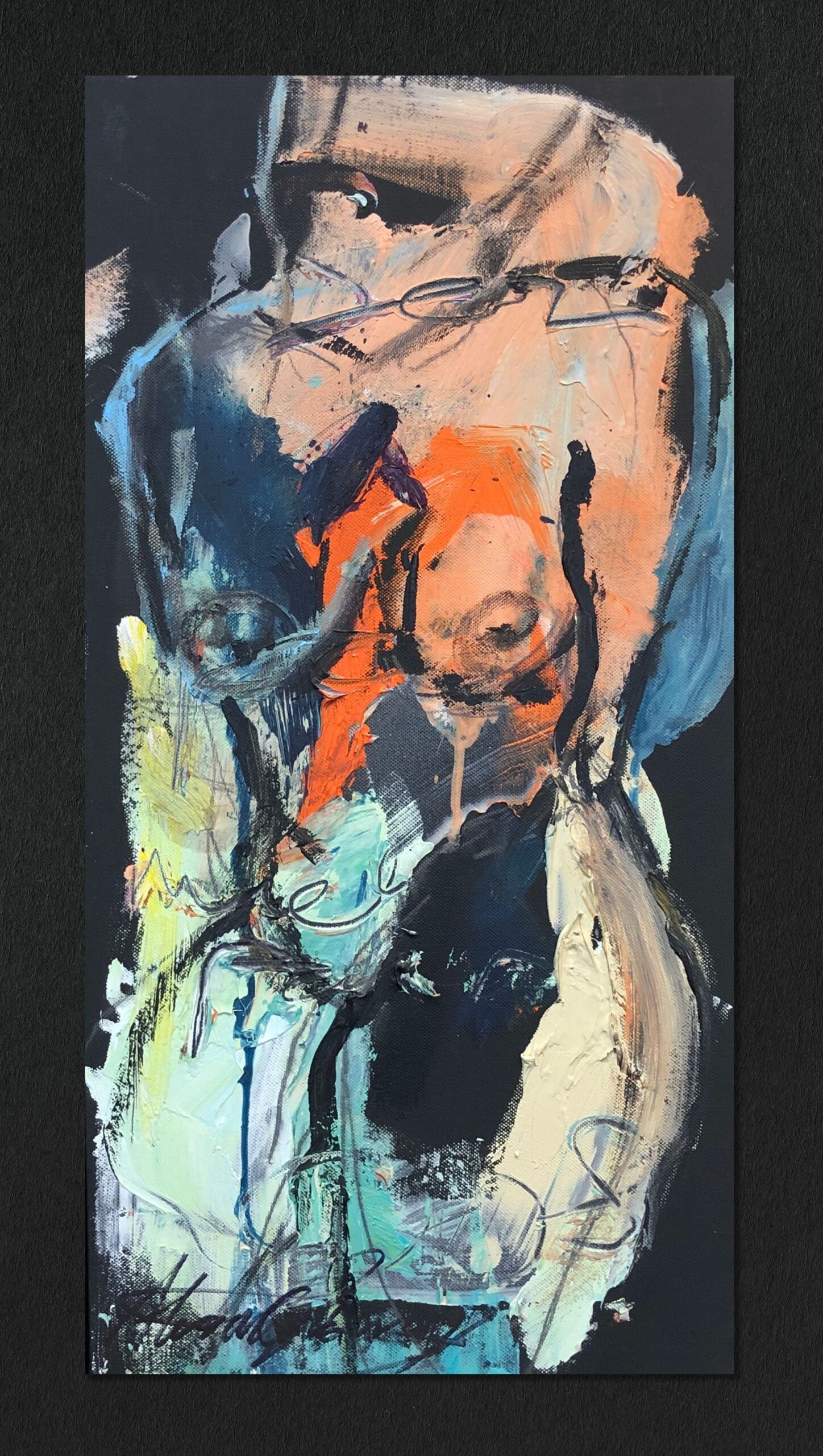 An abstract figurative study in acrylic on canvas by Alexandra Kay Vøhtz.